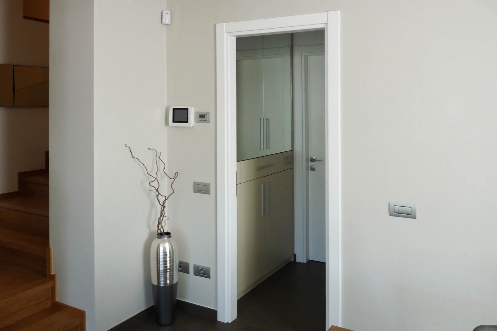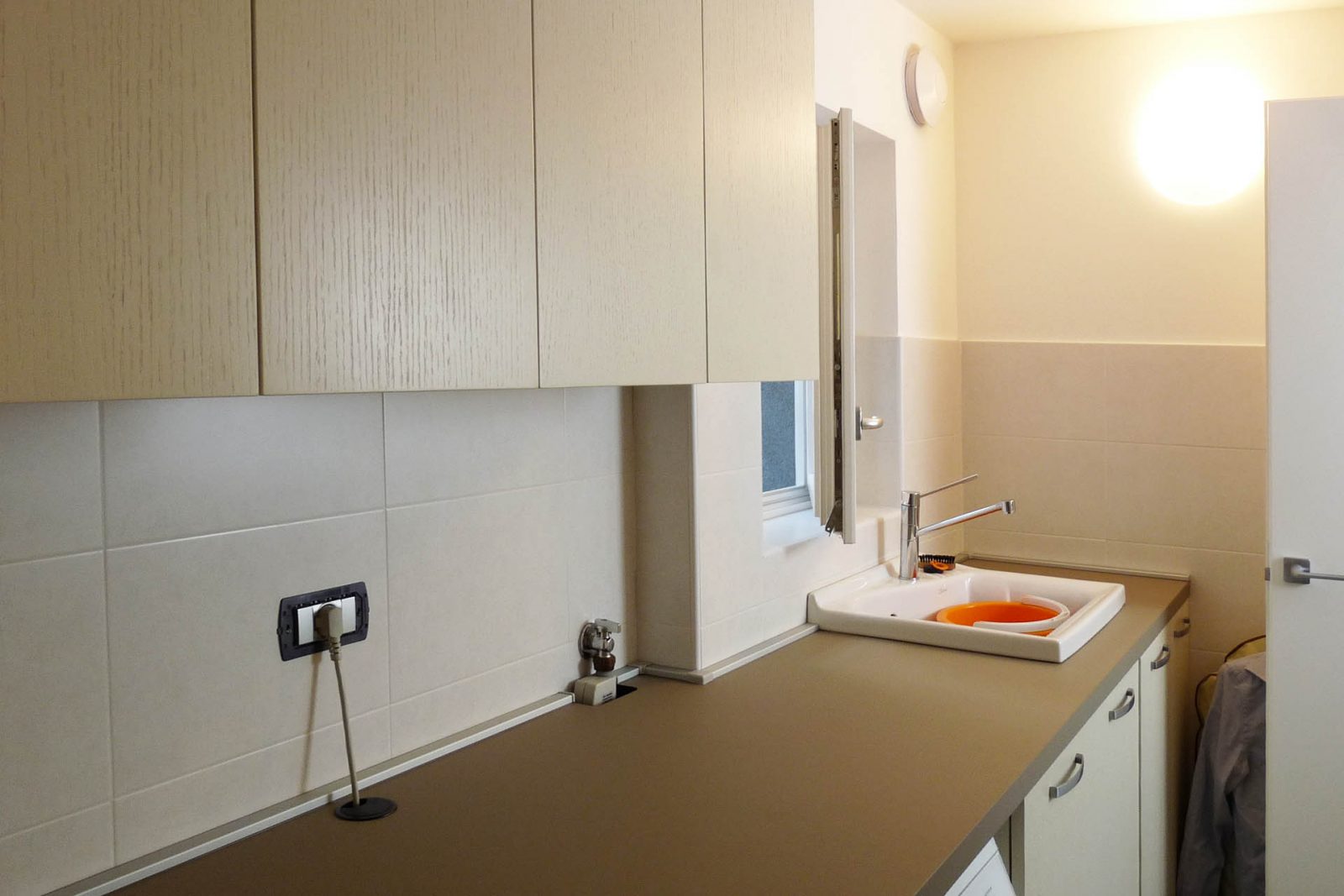 Lo studio del progetto che ha consentito di sfruttare al meglio due zone strategiche della casa, come lavanderia e anticamera, è stata una bella sfida. Abbiamo dovuto valutare tutti i vincoli presenti come: impianti, altezze delle finestre, ingombro delle maniglie e sporgenza dei punti luce a soffitto. Niente è stato lasciato al caso.