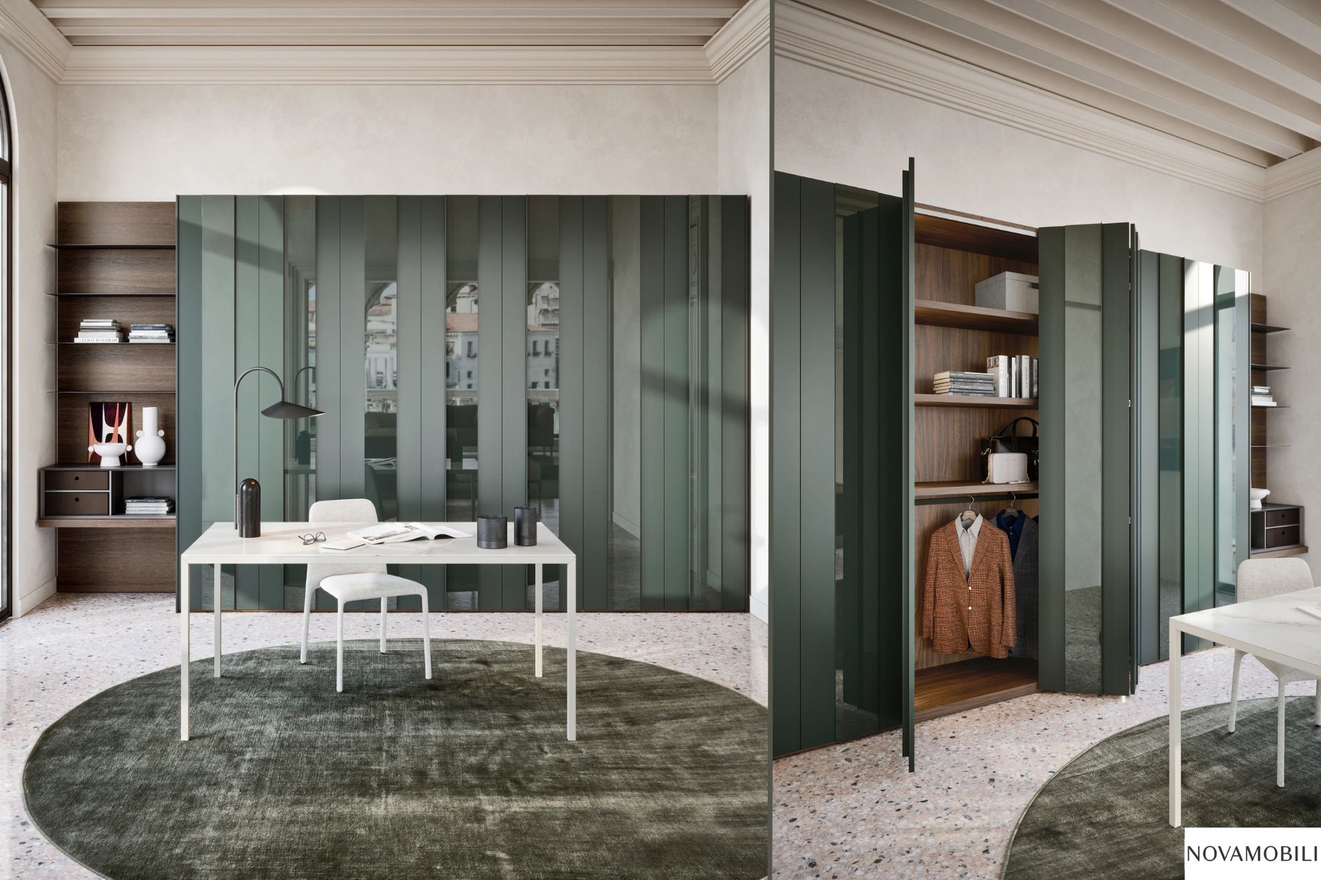 Grazie al sistema di ante sovrapposte, l’apertura risulta fluida e salvaspazio, ideale anche per camere con letti vicini all’armadio o pareti non troppo profonde. Nel nostro showroom proponiamo armadi scorrevoli di alta qualità, completamente personalizzabili nelle misure, nei materiali e nelle finiture, per adattarsi con precisione al tuo progetto d’arredo.