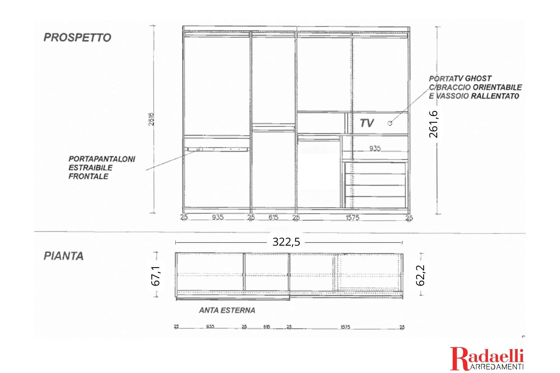 L’armadio ha una profondità di 62,2 cm dal lato destra (anta interna) e di 67,1 cm dal lato sinistro (anta esterna).