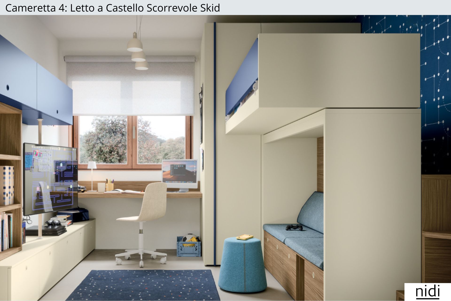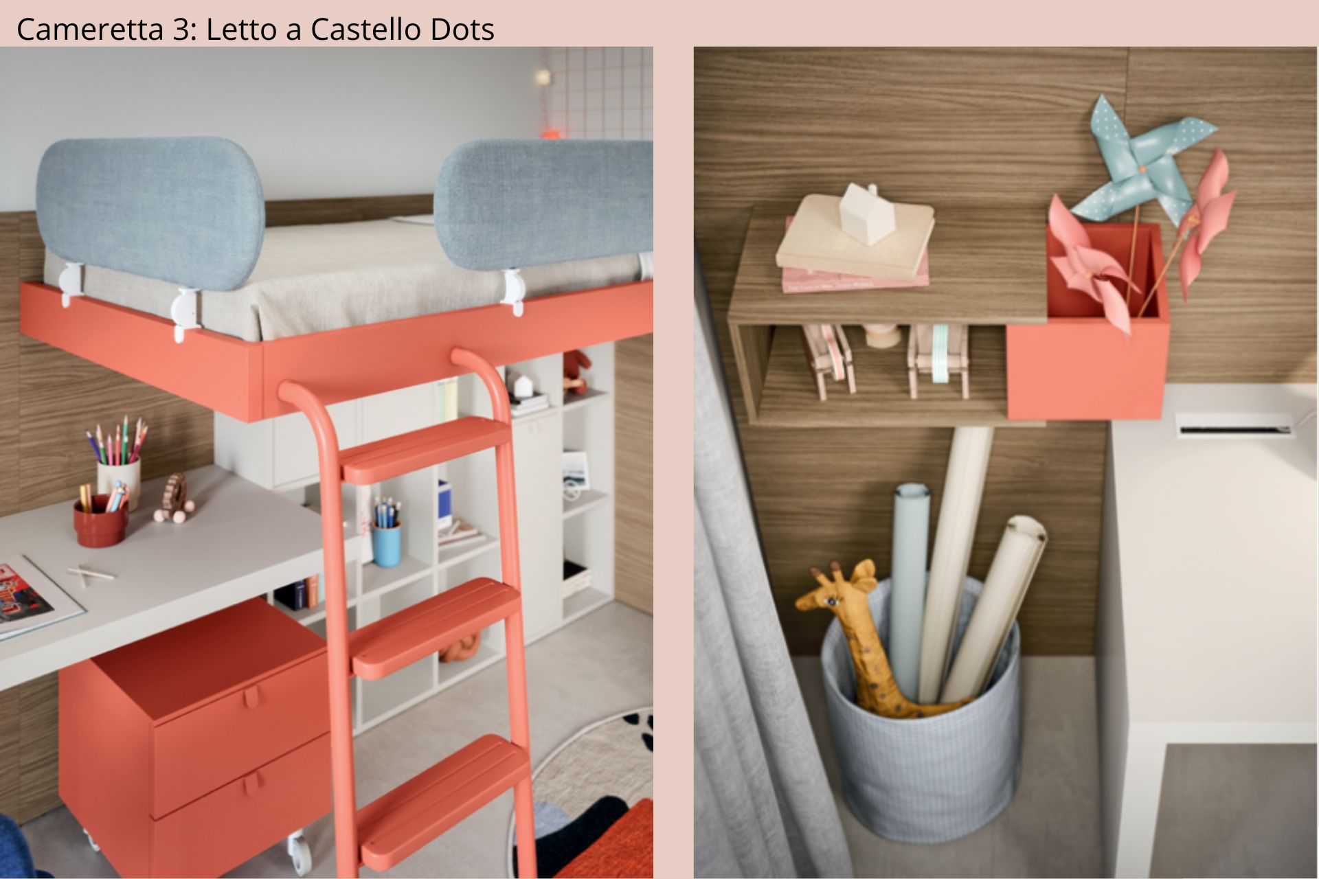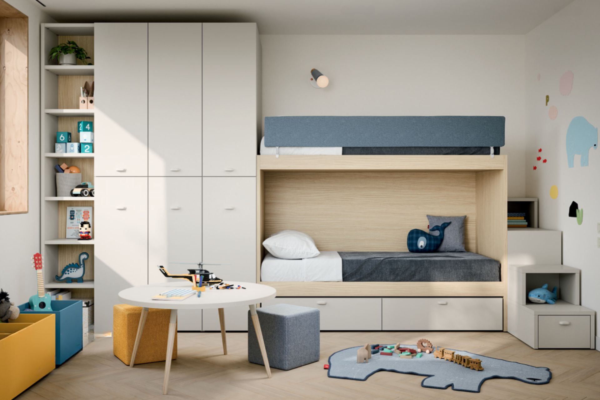 Le camerette a castello permettono di ottimizzare gli spazi e garantire funzionalità e comfort in ambienti dedicati ai bambini e ragazzi. Perfette per stanze condivise o metrature ridotte, le camerette a castello permettono di sfruttare lo spazio in verticale, lasciando libera la superficie per giocare, studiare e muoversi in libertà.
