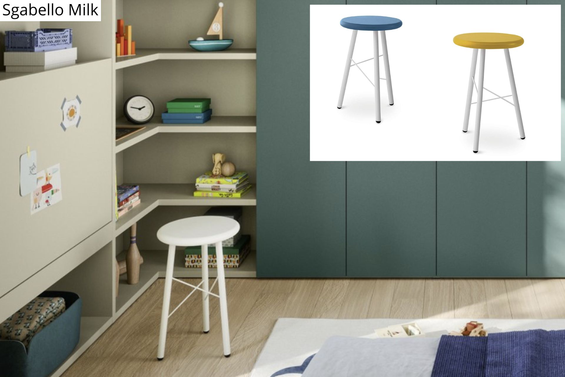 Tra i complementi per cameretta abbiamo selezionato alcuni pouf, sgabelli e sedie, colorati e comodi. Sono perfetti per leggere, giocare o accogliere un amico. Le panche offrono un appoggio e sono ideali come seduta aggiuntiva. Inoltre possono diventare anche un elemento contenitore, grazie a soluzioni ideate appositamente, che uniscono estetica e praticità.