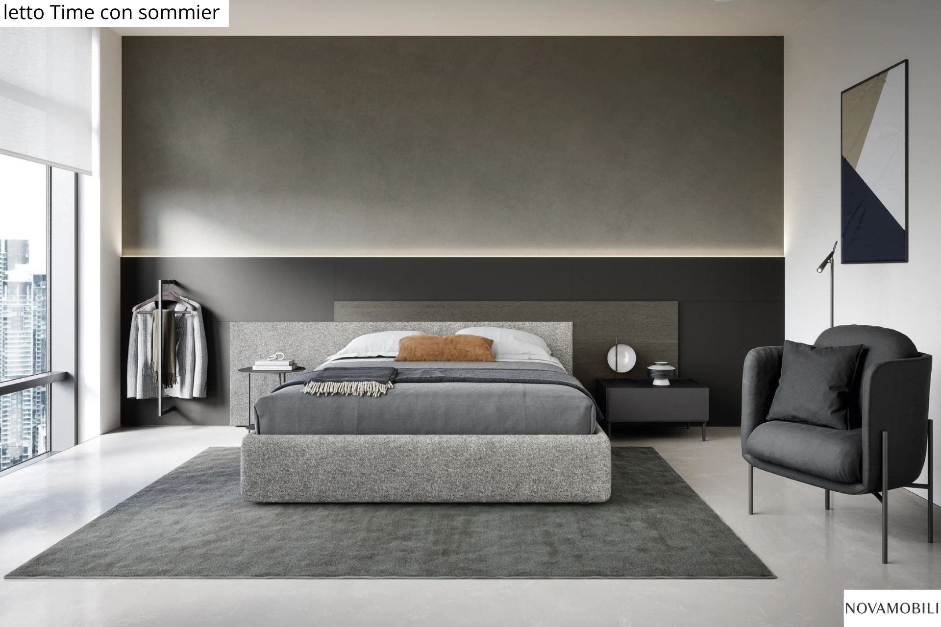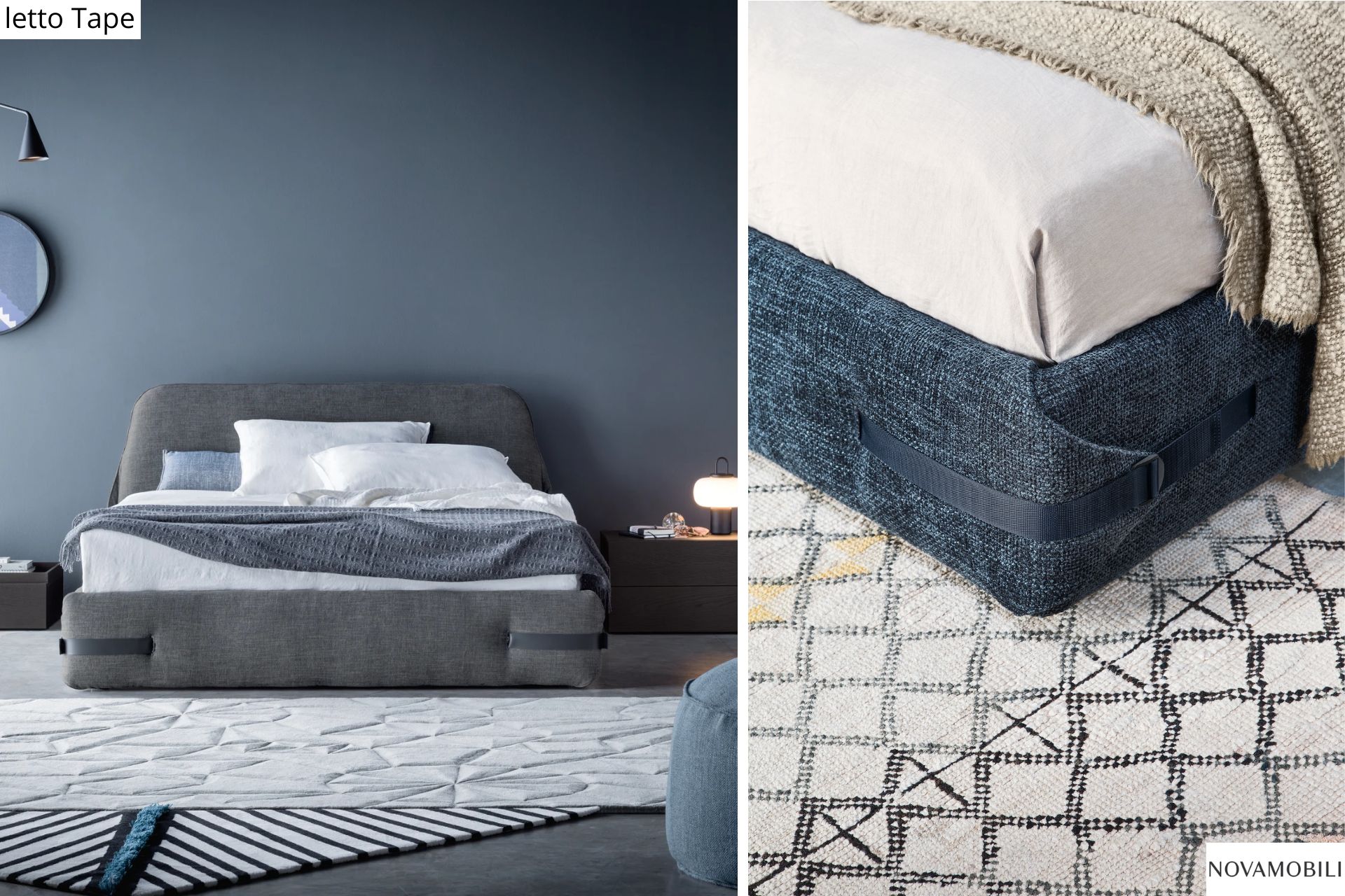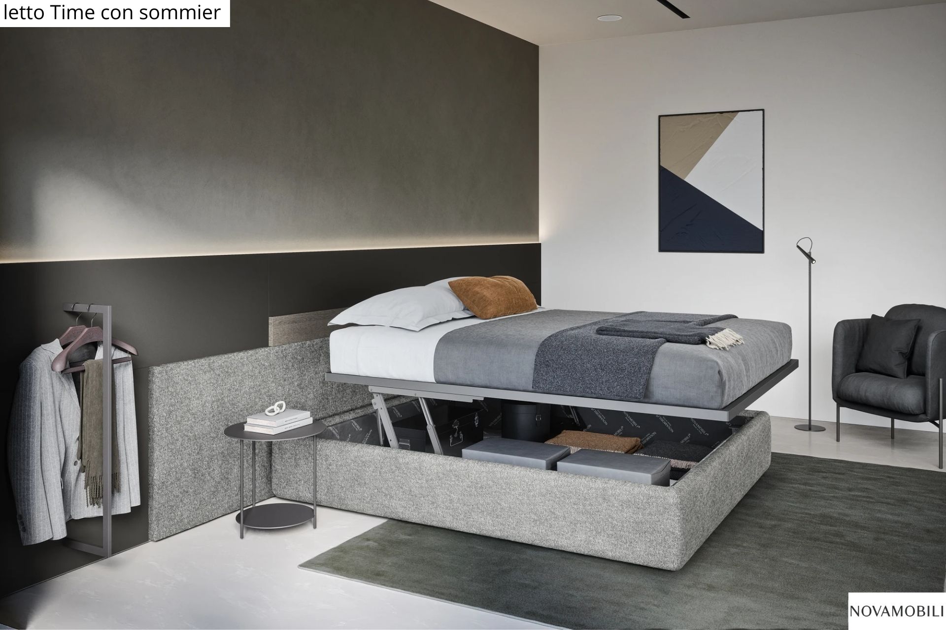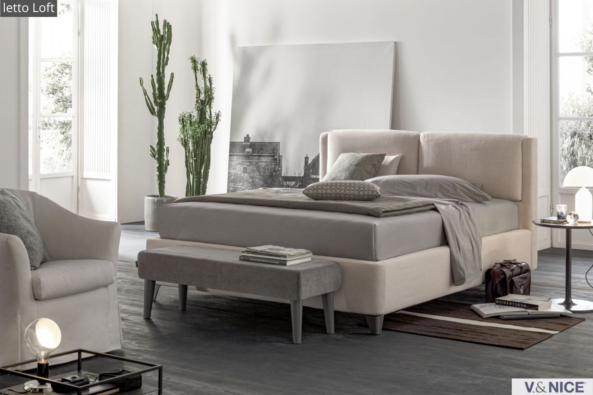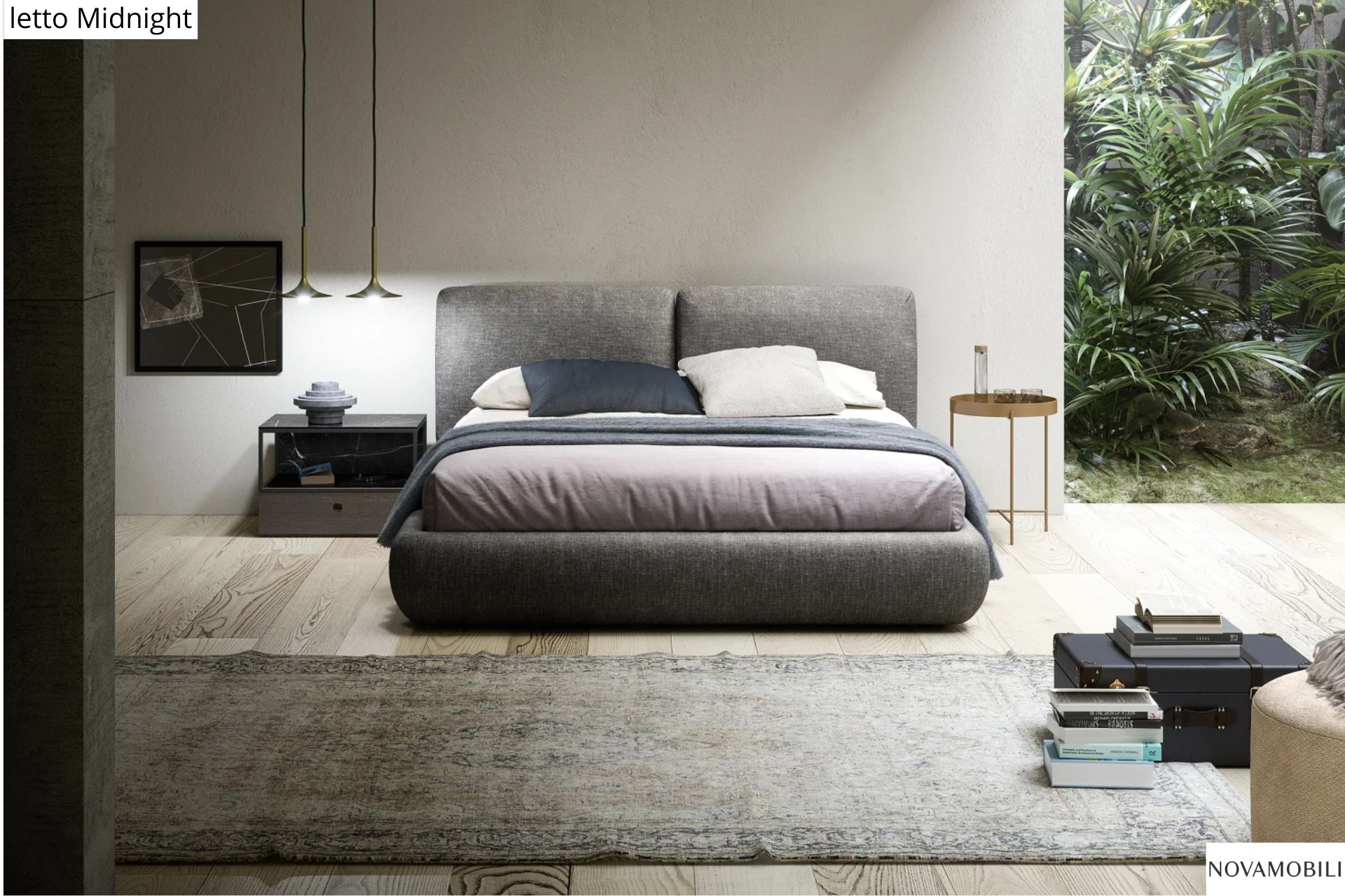 Per chi preferisce la morbidezza dei letti imbottiti, proponiamo le eleganti soluzioni di V&Nice e Novamobili, con testiere confortevoli, rivestimenti sfoderabili e finiture personalizzabili. Il contenitore a terra garantisce pulizia visiva e facilita la gestione degli spazi.