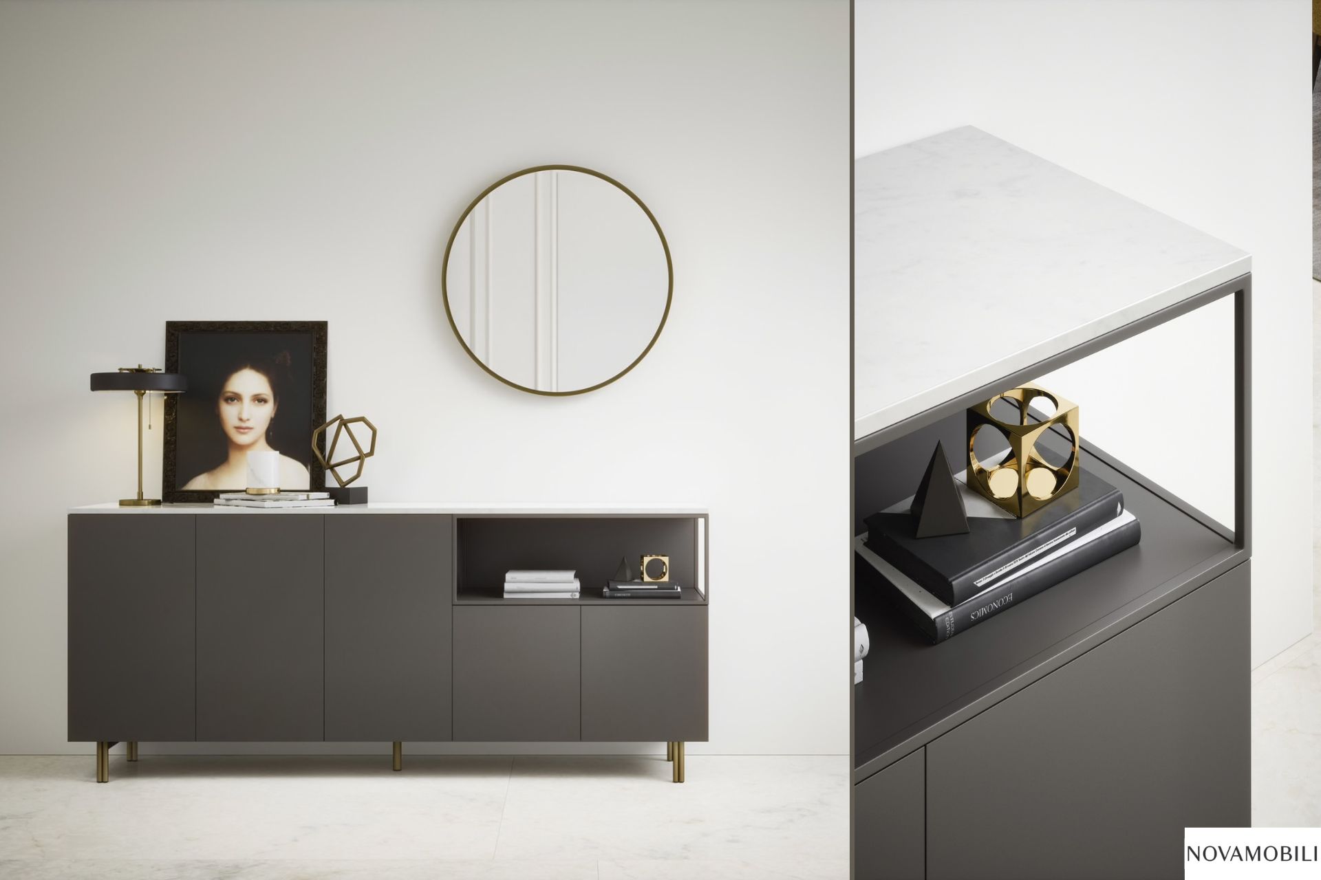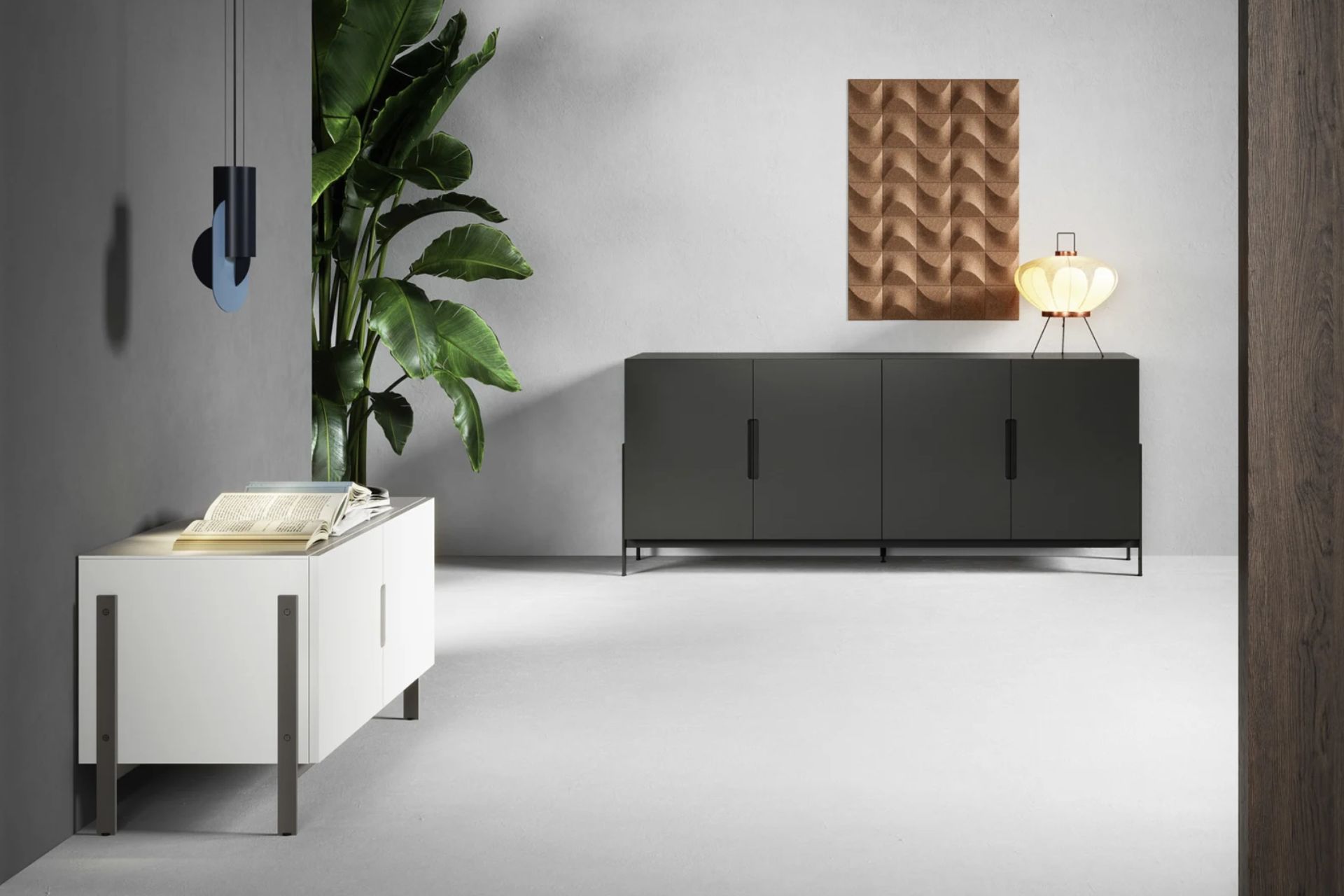 Ogni madia è realizzabile in una vasta gamma di finiture e materiali, per adattarsi ad ogni stile d’arredamento, tra cui: