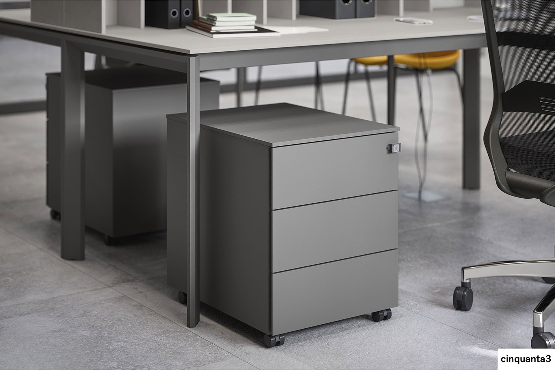 Le scrivanie ufficio Cinquanta3 dalle linee essenziali, sono realizzate con materiali resistenti e finiture curate nei minimi dettagli. Disponibili in diverse dimensioni e configurazioni, si adattano perfettamente sia a piccoli home office che a spazi direzionali più strutturati. Le varianti con cassettiere, piani angolari o moduli integrati creano soluzioni intelligenti che ottimizzano lo spazio e l’organizzare del lavoro.