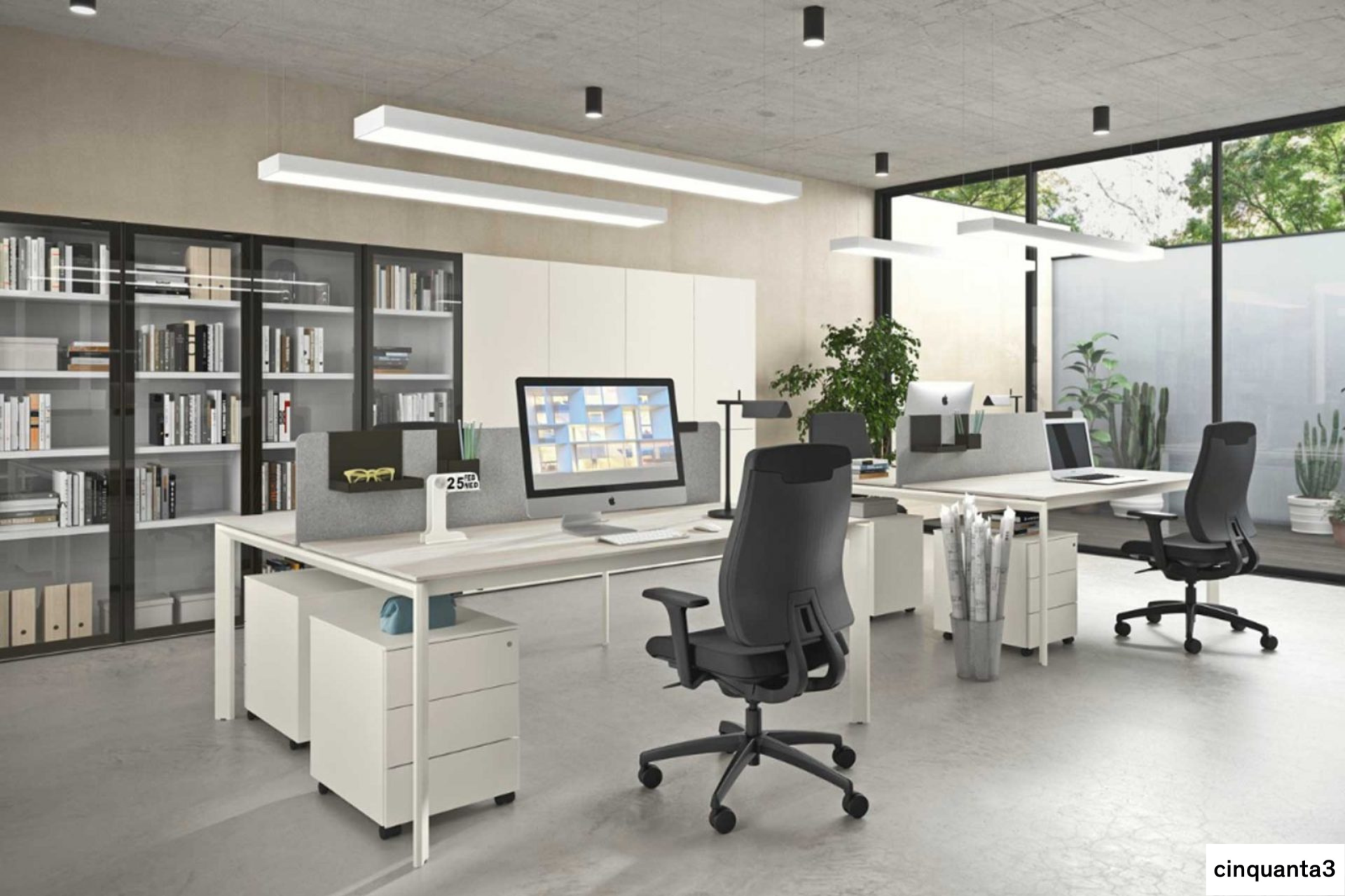 Le scrivanie ufficio Cinquanta3 rappresentano la sintesi perfetta tra funzionalità e design Made in Italy, ideali per chi cerca un arredo elegante, ergonomico e su misura.