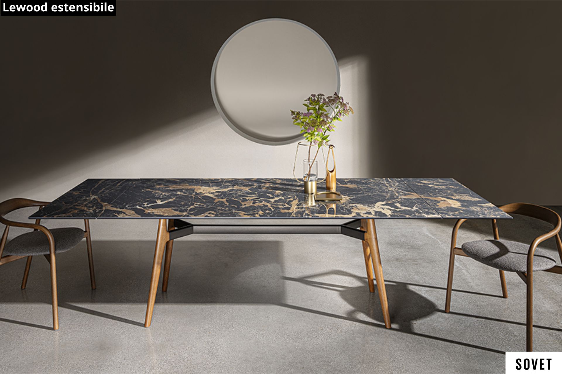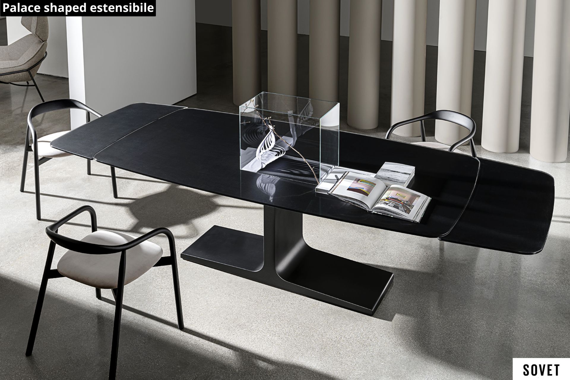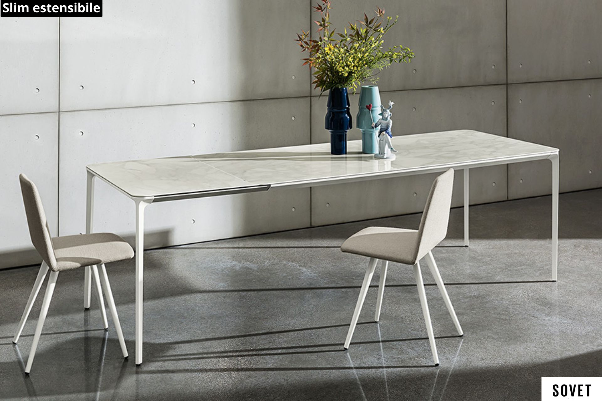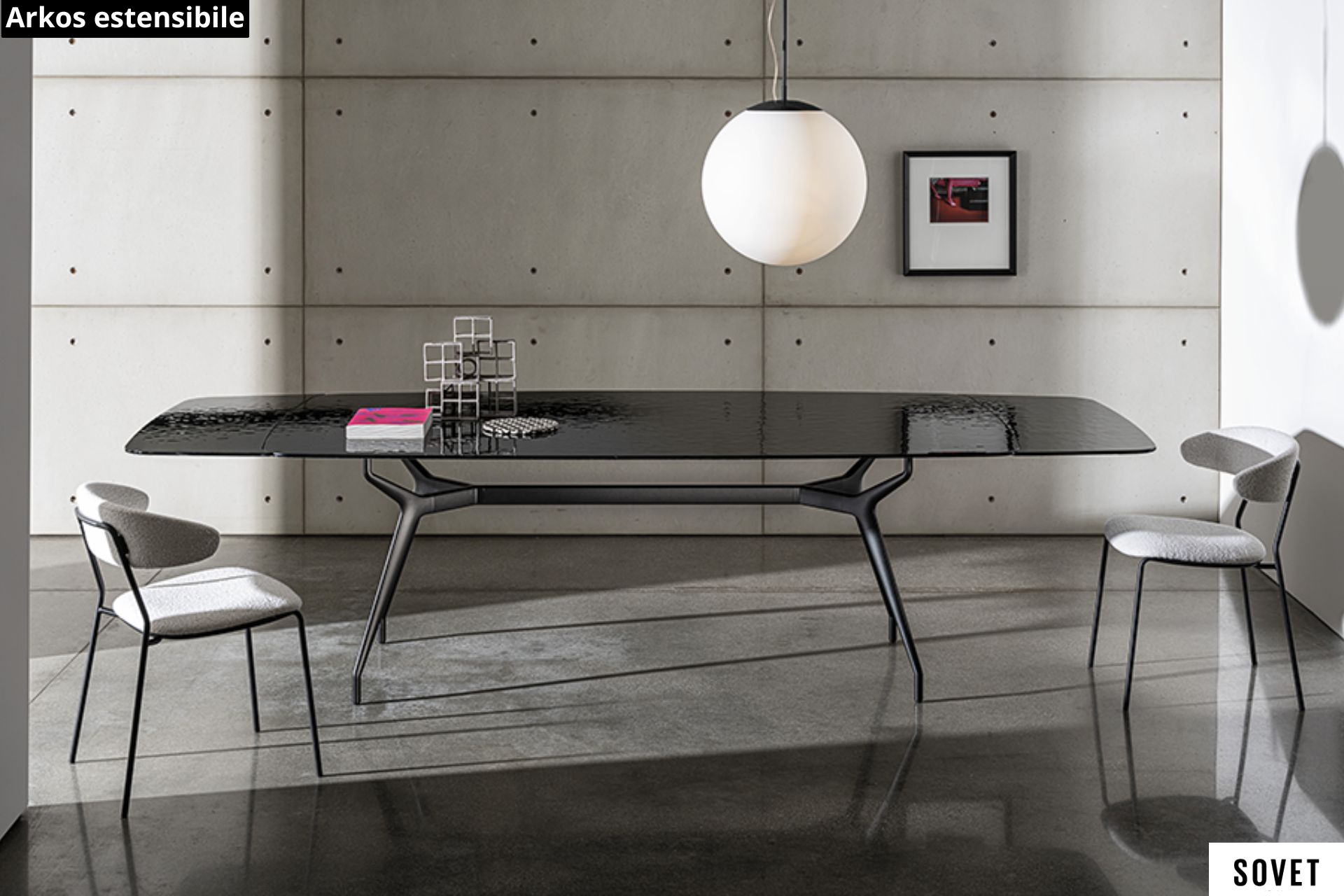 Sovet unisce l’arte del vetro alla modernità delle forme: i suoi tavoli allungabili sono veri e propri oggetti di design, con strutture leggere e talvolta scultoree con allunghe invisibili. Sono perfetti per ambienti eleganti e contemporanei.
