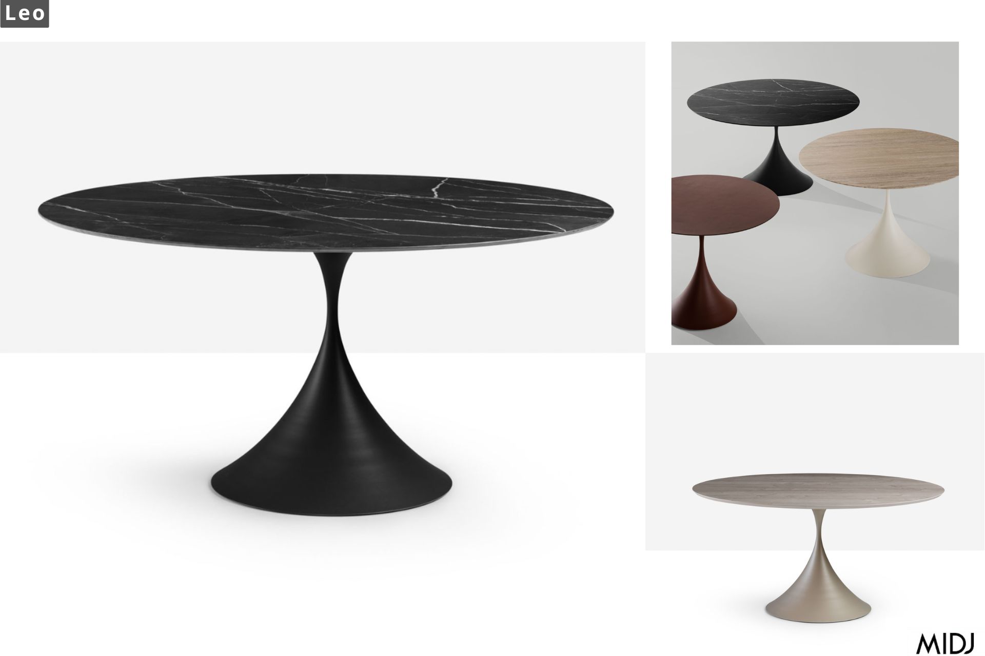 Midj, interpreta il tavolo rotondo in chiave versatile e contemporanea. Le sue collezioni offrono una vasta gamma di modelli, dalle linee più morbide e accoglienti fino a quelle più essenziali e geometriche. I materiali spaziano dal legno ai metalli verniciati, con piani in ceramica, vetro, laminato o legno.