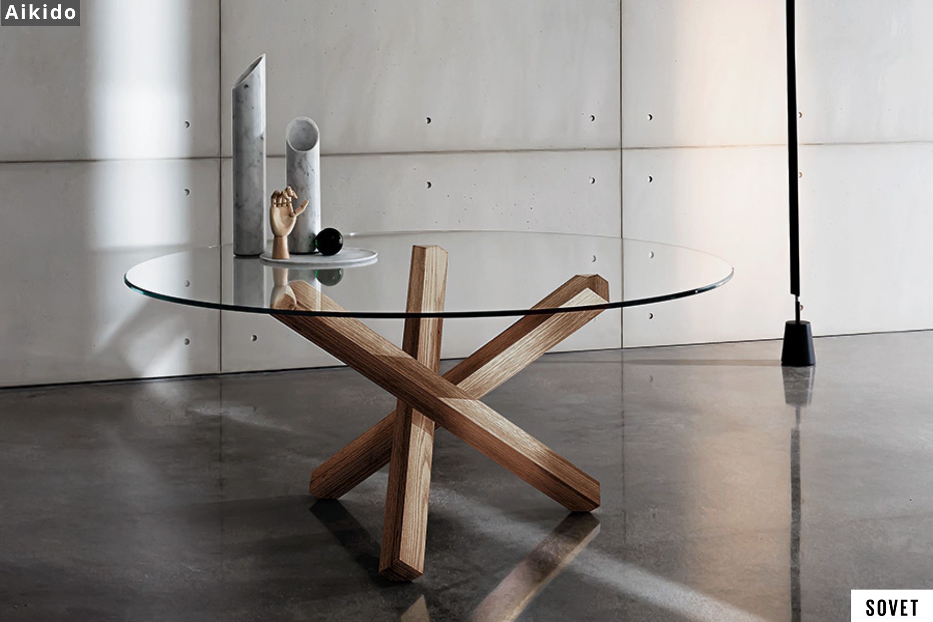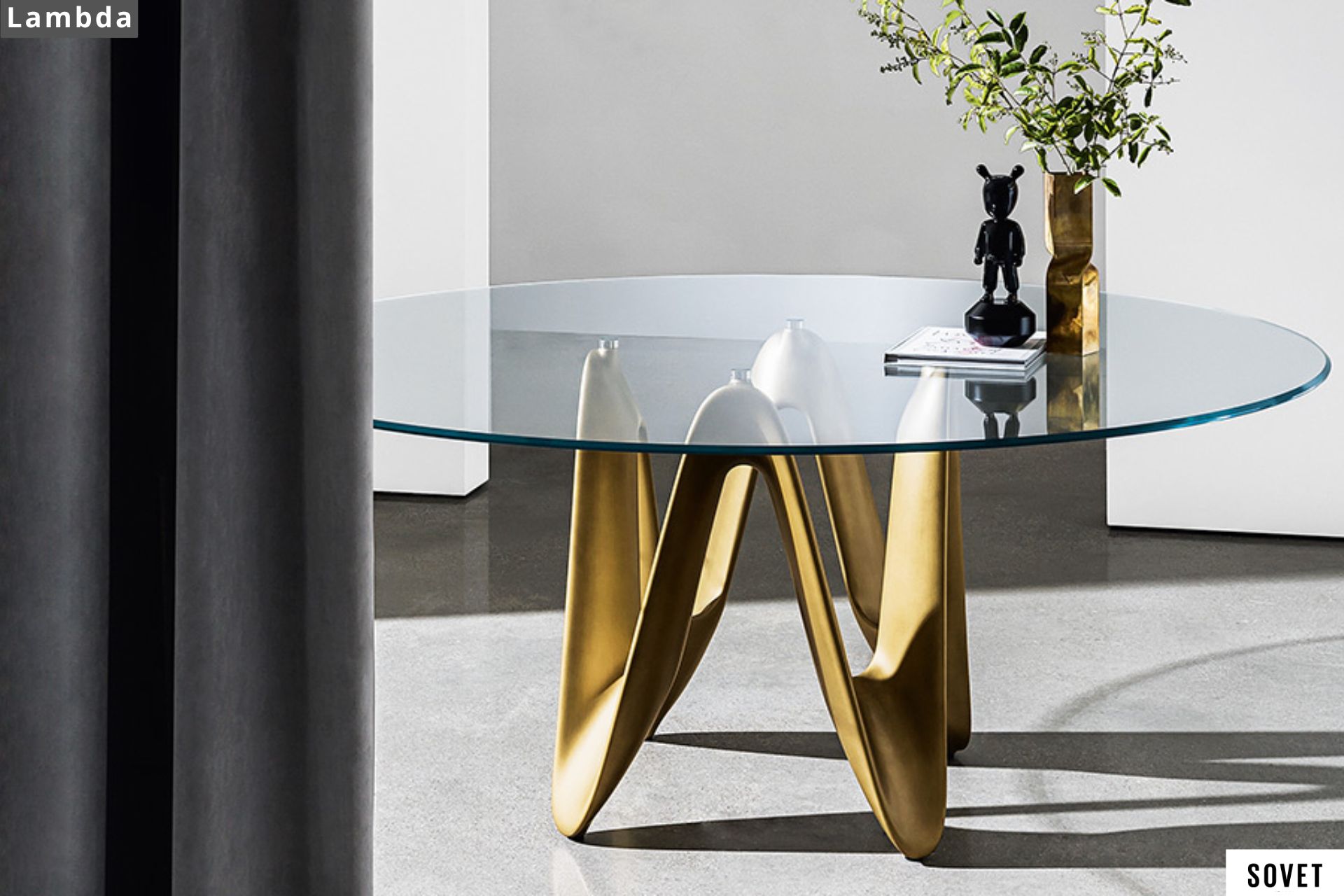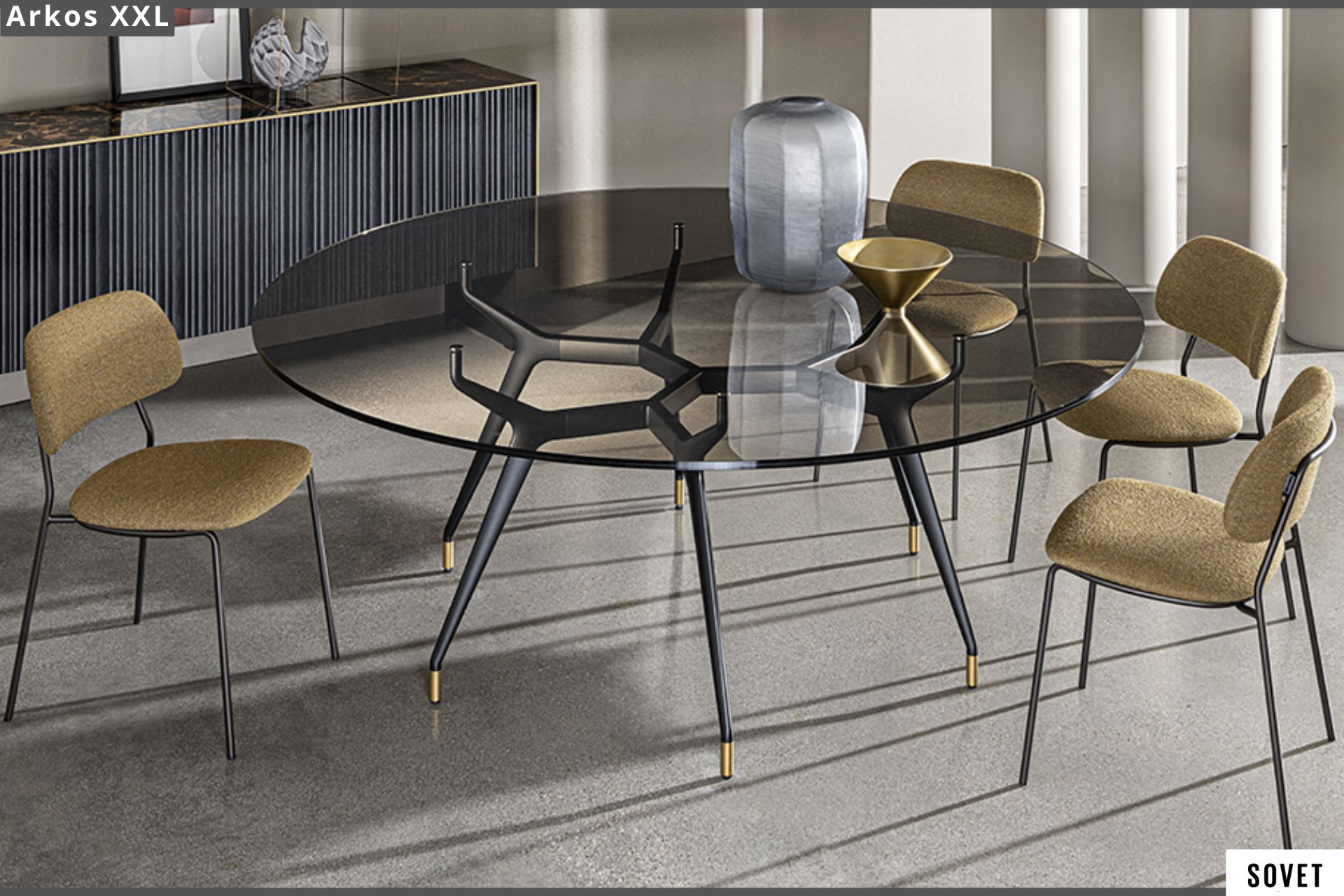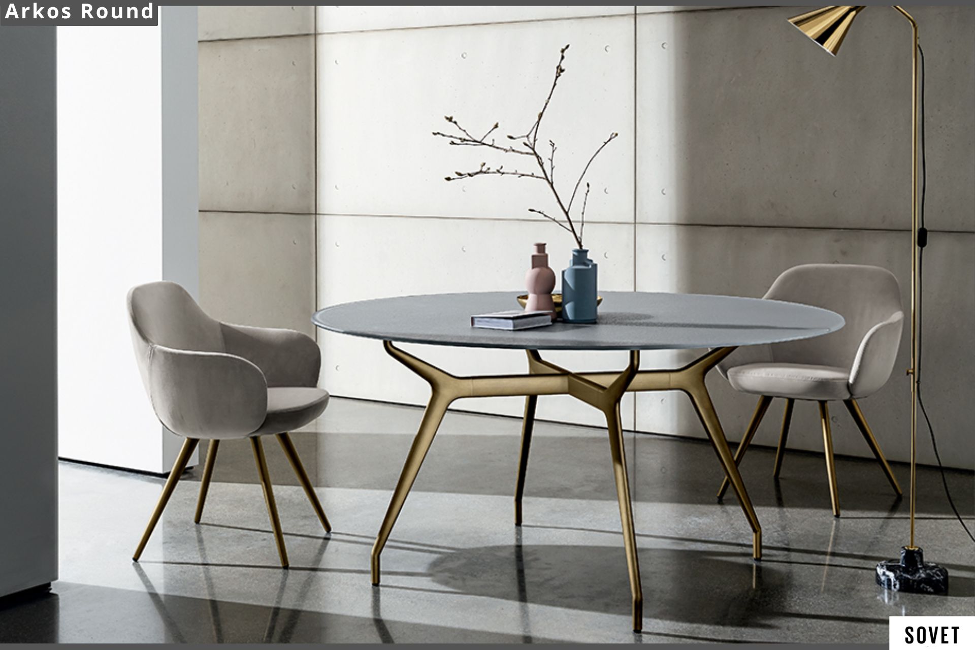 Sovet propone tavoli rotondi in vetro, ceramica, legno e hpl, valorizzati da strutture sofisticate e finiture di pregio. Ogni pezzo è pensato per arredare con armonia e personalità, combinando la tradizione artigianale con soluzioni estetiche moderne. Le basi scultoree e i piani in materiali innovativi rendono i tavoli Sovet veri protagonisti dello spazio.